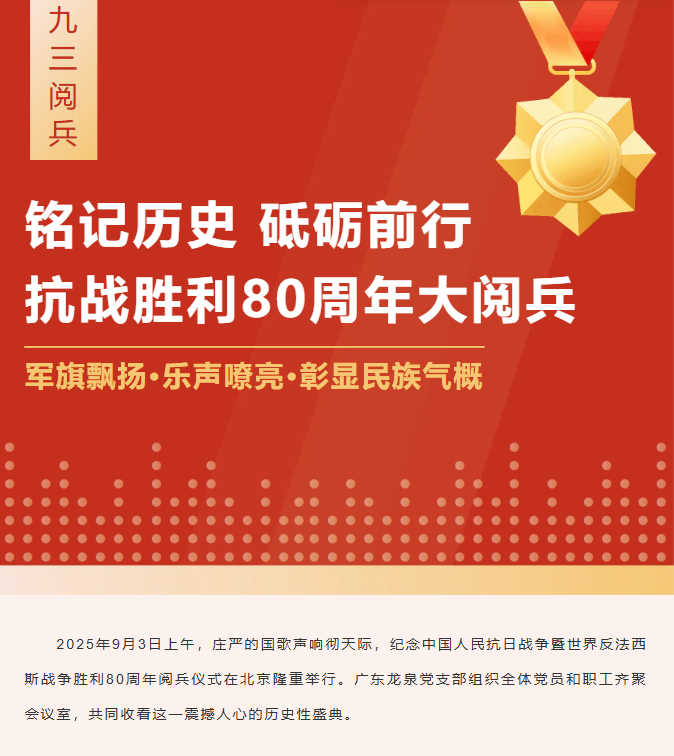 銘記歷史,砥礪前行|廣東龍泉組織觀看紀(jì)念中國人民抗日戰(zhàn)爭暨世界反法西斯戰(zhàn)爭勝利80周年大會